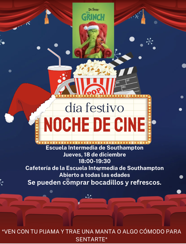 SIS will be hosting Holiday Movie Night on Thursday at 6:00 PM in the cafeteria! Families are invited to drop off their children and enjoy a festive evening. Please see the attached flyer for more information.